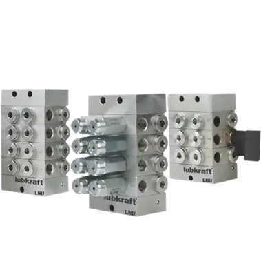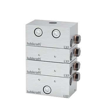 O distribuidor LXF, compacto e robusto, direciona óleo ou graxa a cada saída por movimento progressivo de êmbolo. Atende de 3 a 24 pontos de lubrificação, com opções de deslocamento, e pode incluir sensores mecânicos ou eletrônicos para maior confiabilidade.