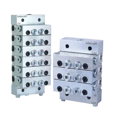 A série LSP estabelece o padrão da indústria em qualidade, confiabilidade e facilidade de uso. Foi a primeira válvula divisora progressiva modular e continua sendo a melhor! Sua modularidade proporciona extrema flexibilidade de projeto e manutenção, pois as conexões das tubulações de saída ficam em uma placa base separada do bloco do pistão dosador.