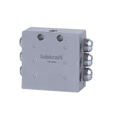 Os dosadores LSV são dispositivos progressivos de bloco único que dividem o lubrificante em quantidades pré-determinadas, operando sob altas contrapressões e ampla faixa de temperaturas, com pressão máxima de 350 bar. Disponíveis com 6 a 22 saídas, permitem monitoramento visual por indicador de pino ou elétrico por detector de pistão.